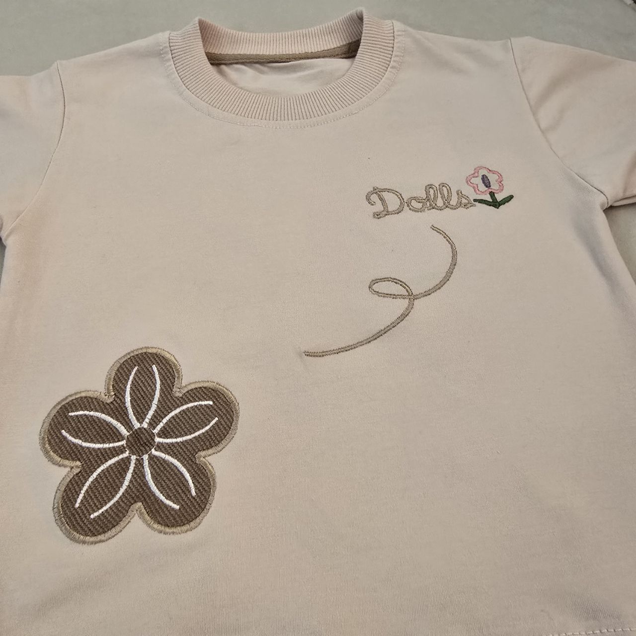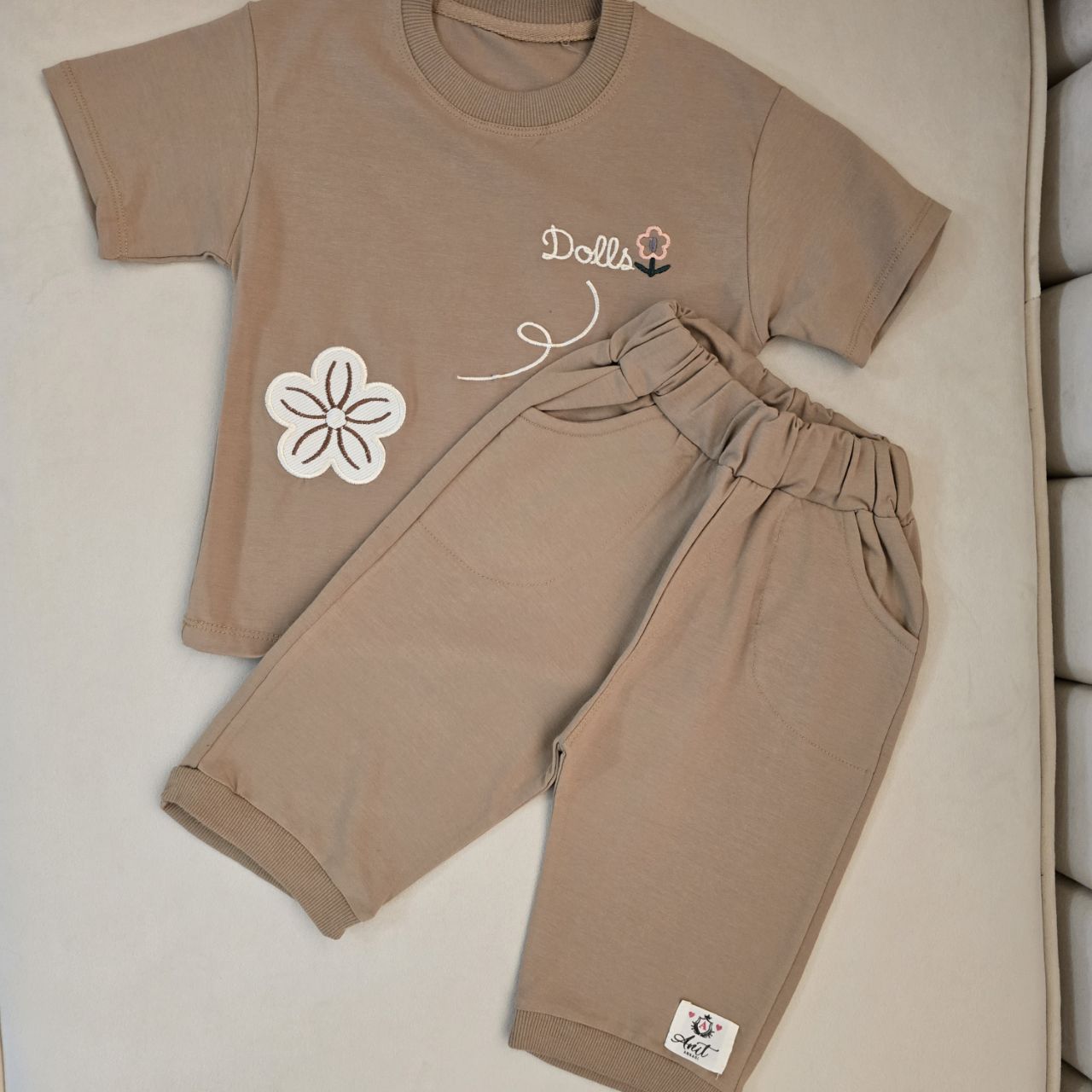 ست بسیار زیبا و چشمگیر تیشرت شلوارک دخترانه با گلدوزی روی تیشرت