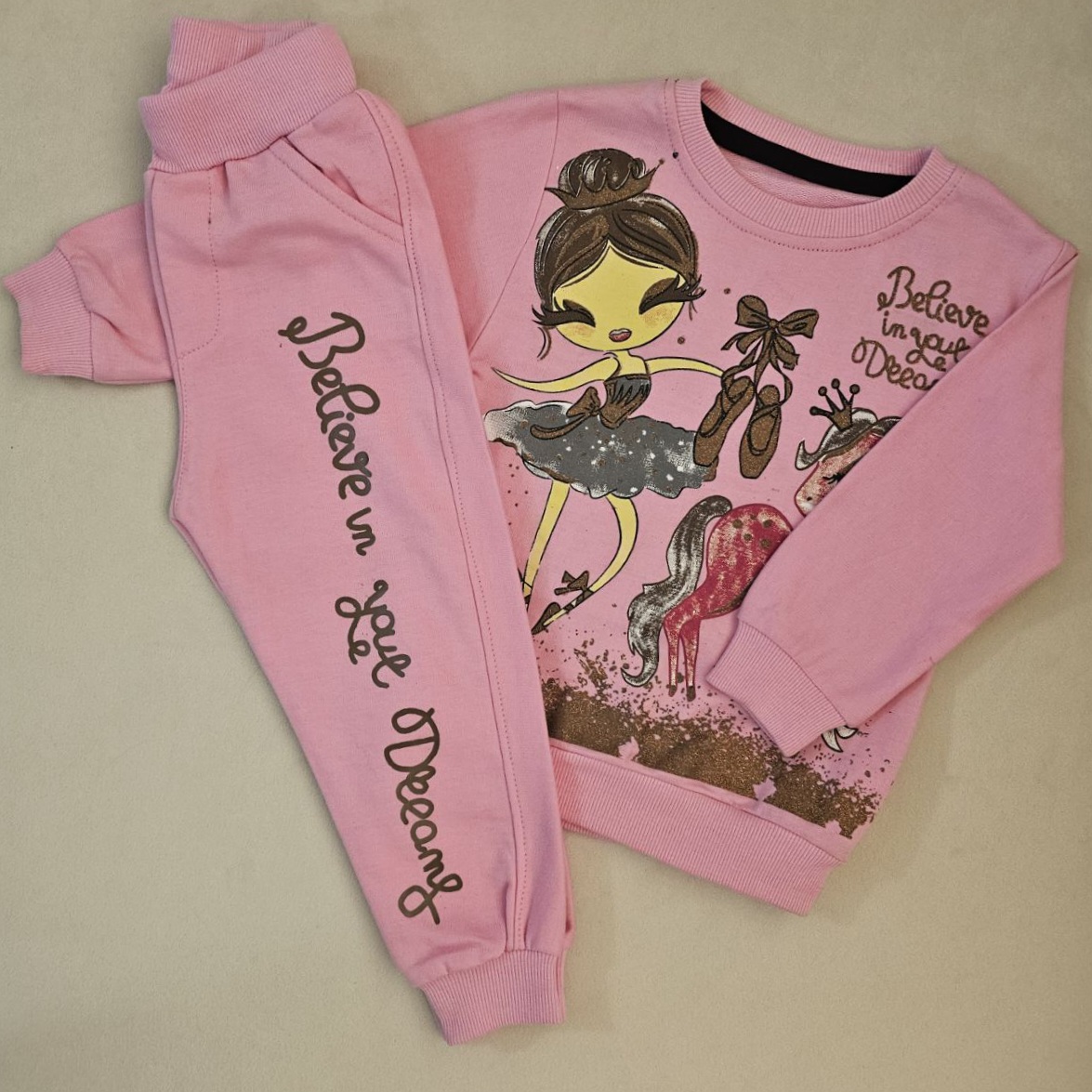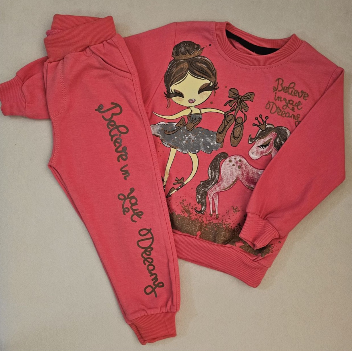 ست بلوز شلوار دخترانه در ۳ رنگ جذاب فسفری،صورتی،سرخابی