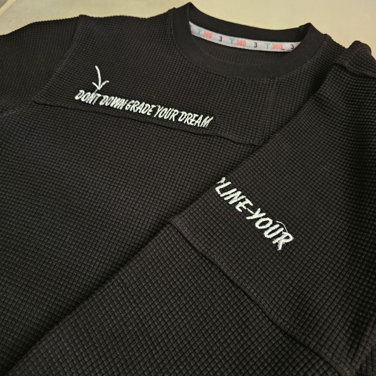 نوع پارچه: بافت پارچه از نوع وافل (Waffle Knit) یا لانه زنبوری ریز است که علاوه بر ظاهر شیک، تنفسپذیری بالایی دارد.