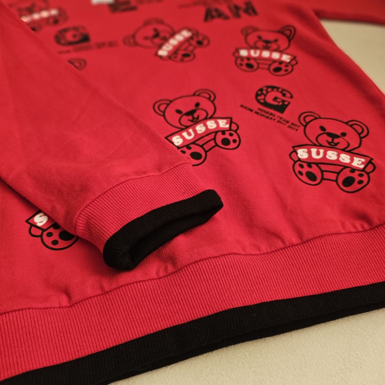 طرح پارچه: دارای چاپ تمامچاپ (All-over Print) با الگوهای فانتزی از خرسهای تدی و حروف انگلیسی.