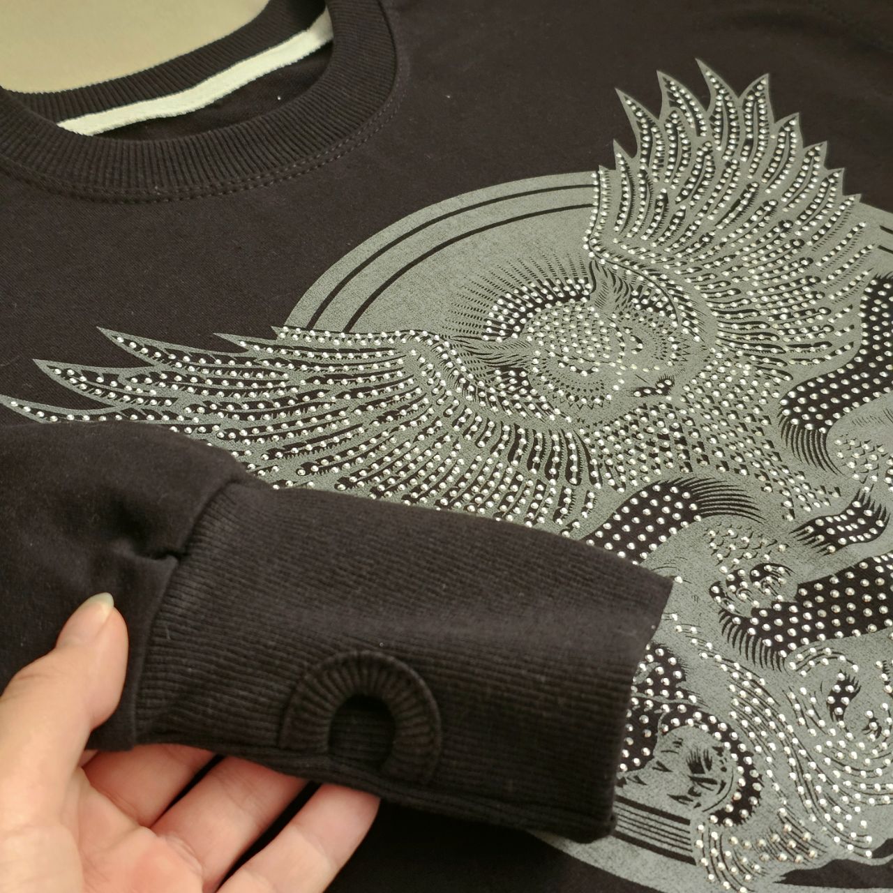 آستین فینگردار: یکی از جذابترین ویژگیهای این دورس، مچهای کشبافت بلند با جای انگشت شصت (Fingerhole) است که علاوه بر گرمای بیشتر، استایلی کاملاً اسپرت و امروزی به لباس بخشیده است