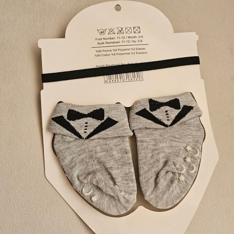 اجزای ست: شامل یک جفت جوراب نوزادی و یک پاپیون کشی مجلسی.