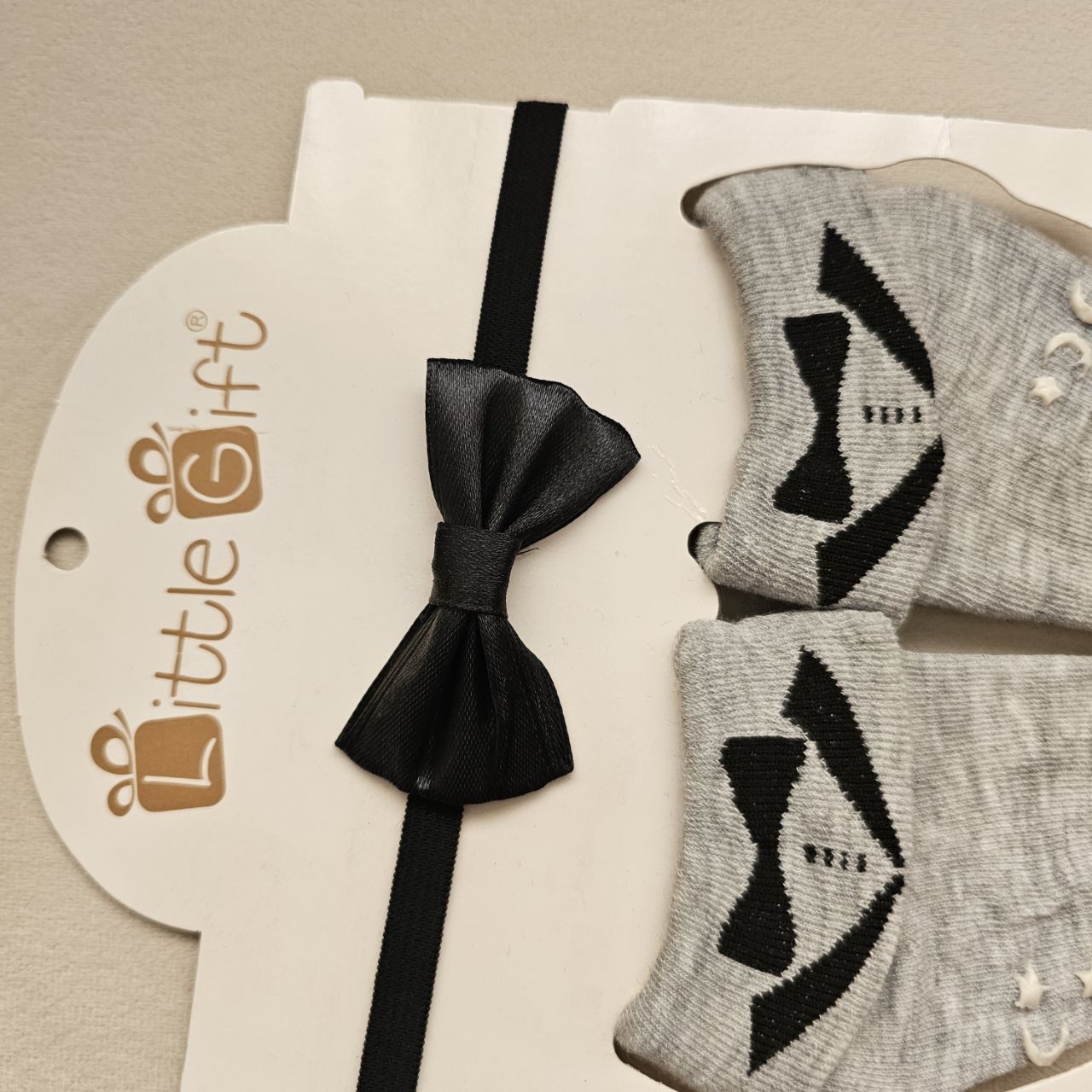 اجزای ست: شامل یک جفت جوراب نوزادی و یک پاپیون کشی مجلسی.
